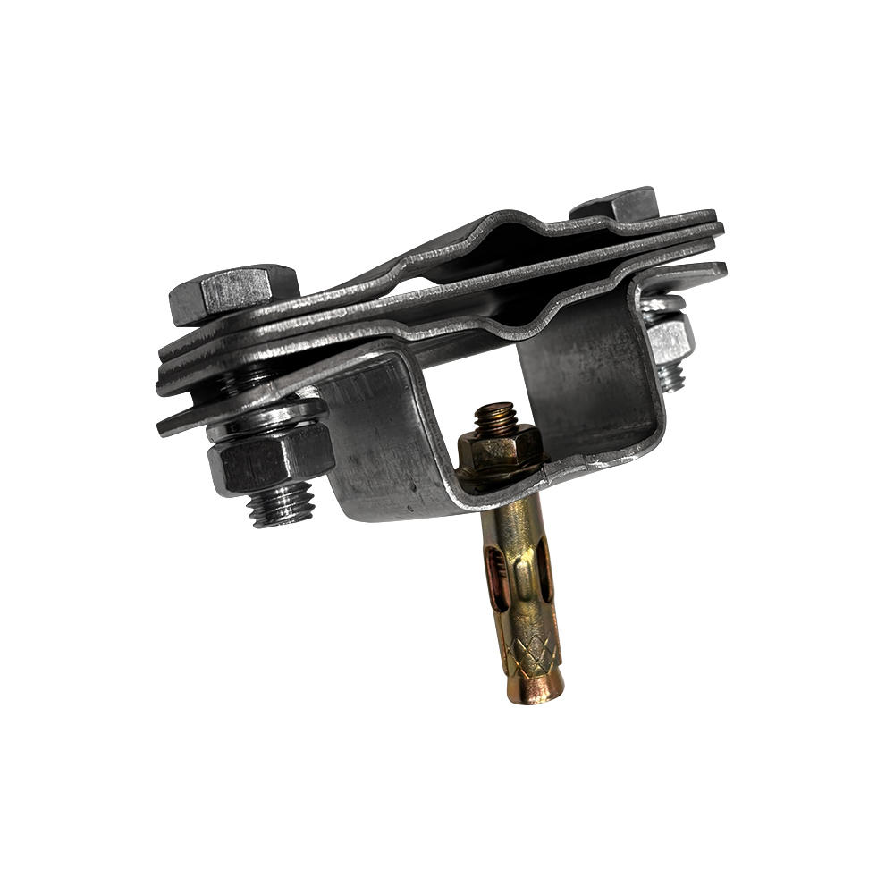 Зажим стягивается болтами с гайками М8. Для крепления держатель имеет отверстие диаметром 8,4 мм под винт либо саморез. Держатель закрепляется на бетонную либо кирпичную поверхность при помощи двух анкерных болтов диаметром 8 мм и длиной 40 мм.