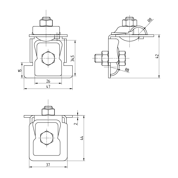 кровли прижимаются к основе держателя болтами с гайками М8.