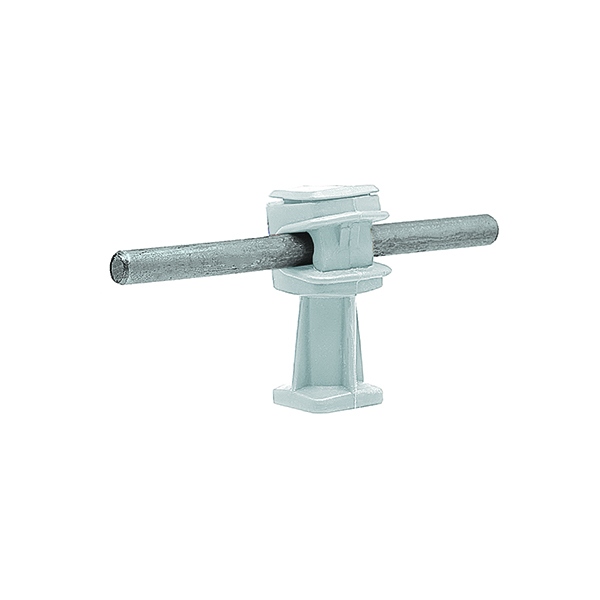 Держатель выполнен из пластика белого цвета. Он закрепляет пруток молниезащитной сетки диаметром 6-8 мм на кровле и/или фасаде здания. Расстояние от прутка до основания держателя составляет 36 мм. В основании держателя имеется отверстие для крепления при помощи винта (самореза).