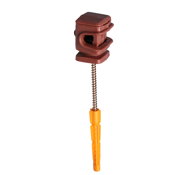Держатель проводника круглого 6-8 мм коричневый, высота 16 мм, пластик с дюбелем 52 мм.