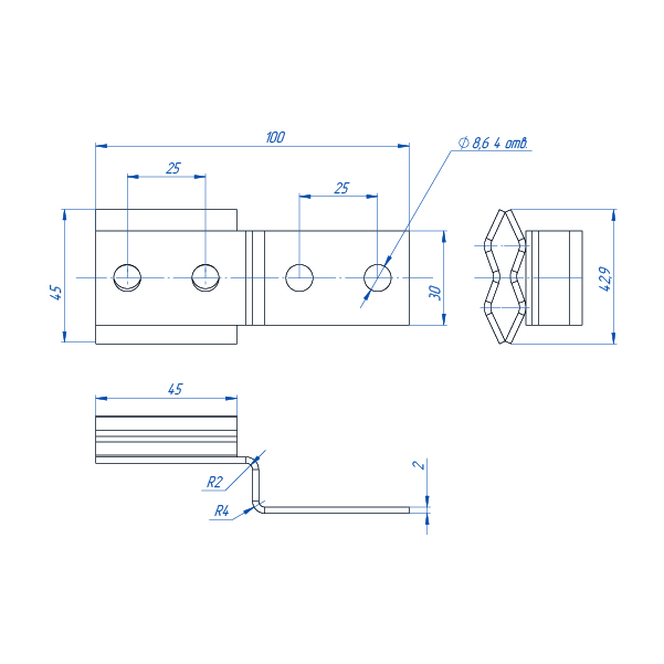 Для крепления на плоскости пластина держателя-зажима имеет два отверстия диаметром 8,4 мм.