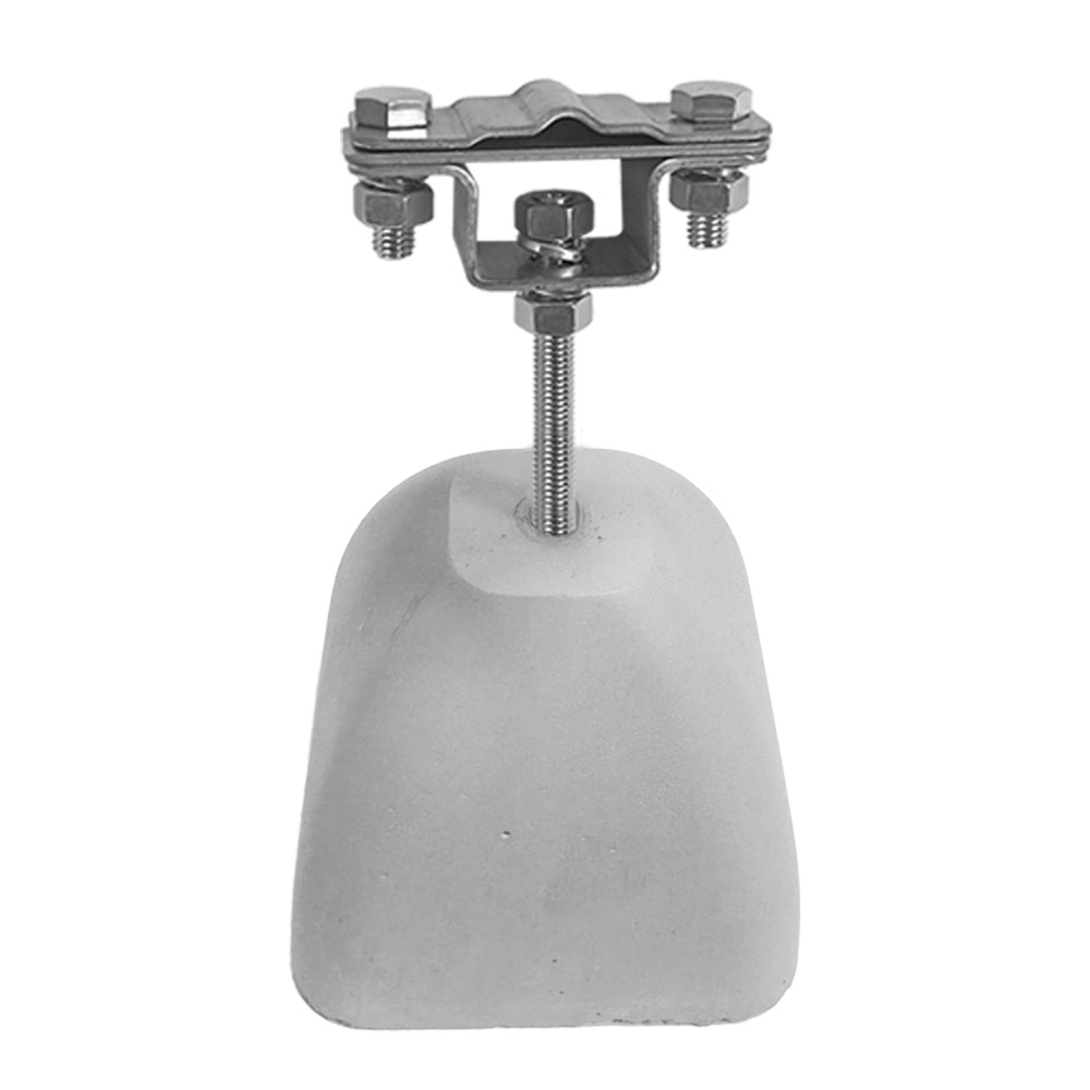 Держатель-зажим применяется для закрепления прутка и полосы молниезащитной сетки на плоских кровлях. Изделие выполнено на основе бетонного утяжелителя массой 1 кг. Проводники надежно закрепляются на кровле под собственным весом утяжелителя. В состав изделия входит зажим из оцинкованной стали для соединения прутка диаметром 8-10 мм с полосой шириной до 40 мм.