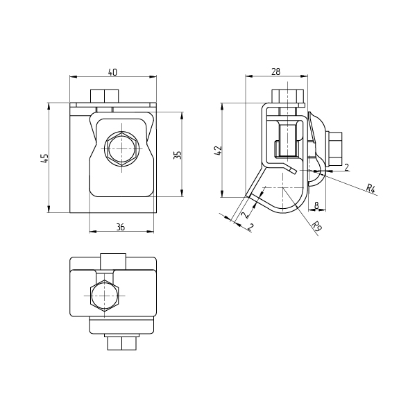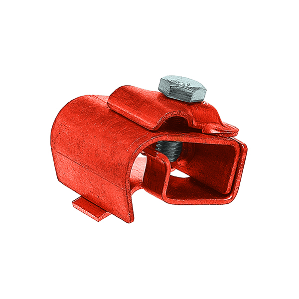 Держатель применяется в системах молниезащиты для крепления проводников на водосточных желобах. Держатель закрепляет пруток молниезащитной сетки 8-10 мм на желобе водостока диаметром от 16 мм до 22 мм. Пластины с пазами под фальц кровли прижимаются к основе держателя болтами М8.