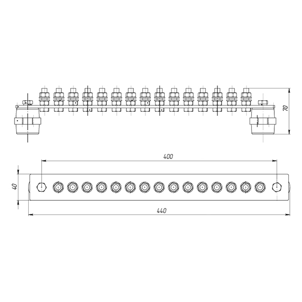 ГЗШ 15 подключений 440х40х4 мм, медь.