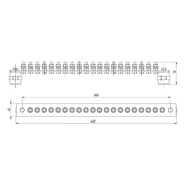 ГЗШ 20 подключений 600х40х4 мм, медь