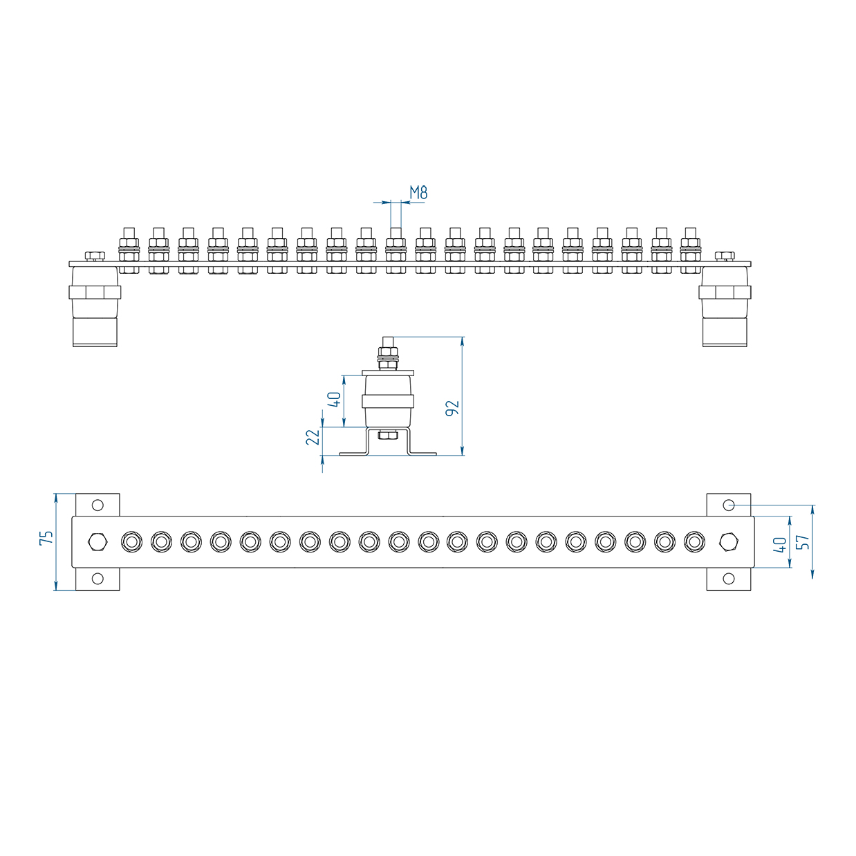 ГЗШ 20 подключений 600х40х4 мм на П-образных пластинах, медь.