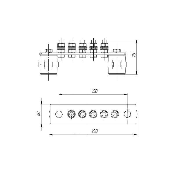 ГЗШ 5 подключений 190х40х4 мм, оцинк.