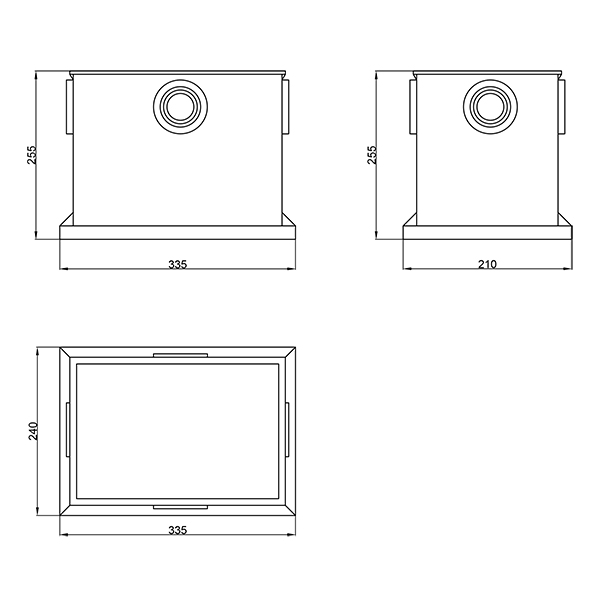 Устройство имеет выбивные вводы для труб с четырех сторон - совместимый диаметр труб: 50 мм, 63 мм, 110 мм. Крышка усилена ребрами жесткости и выдерживает нагрузку до 700 кг.
