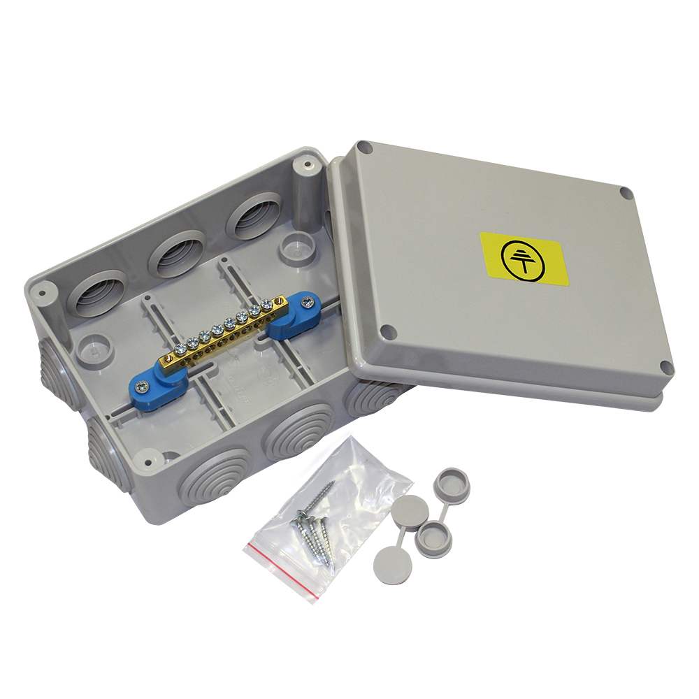 Коробка уравнивания потенциалов предназначена для организации дополнительной системы уравнивания потенциалов в квартирах, домах, офисах и производственных помещениях — коробка объединяет защитные проводники электрического оборудования и подключается к ГЗШ. Коробка уравнивания потенциалов выполнена из пластика в герметичном исполнении со степенью защиты IP 55.