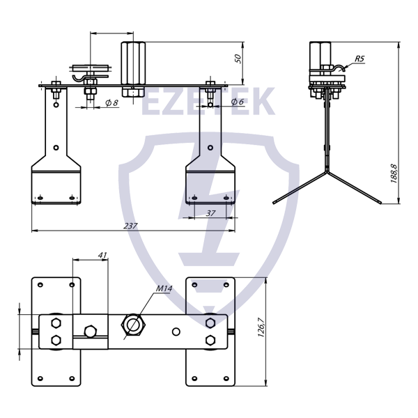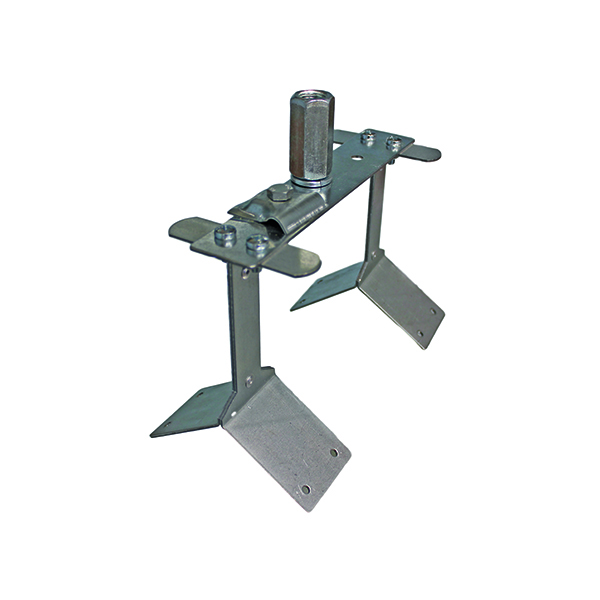 Держатель применяется для установки молниеприемника длиной до 2 м на простом коньке скатной кровли. Держатель закрепляется на кровле при помощи двух скоб для конька. Для установки молниеприемника держатель имеет втулку с внутренней резьбой М16.