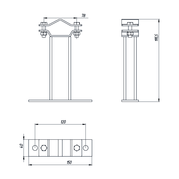 Кронштейн для мачты 150 мм стандарт, сталь.