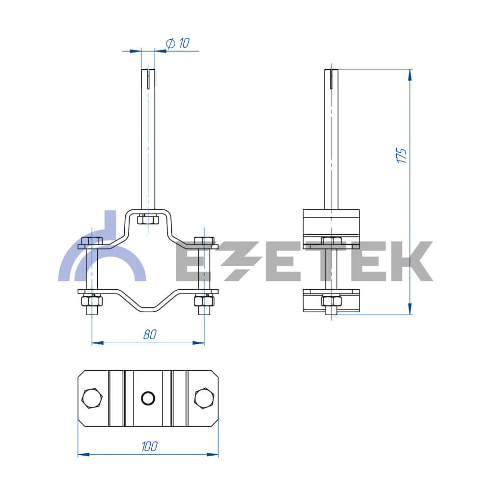 Кронштейн применяется для закрепления мачты типа СММ или СМЛ в непосредственной близости к стене при помощи анкерного крепления. Диаметр мачты - от 32 до 63 мм, глубина анкера 100 мм, просвет крепления 17 мм. Пластины кронштейна выполнены из окрашенной порошковым методом стали, не окрашенные детали оцинкованы.