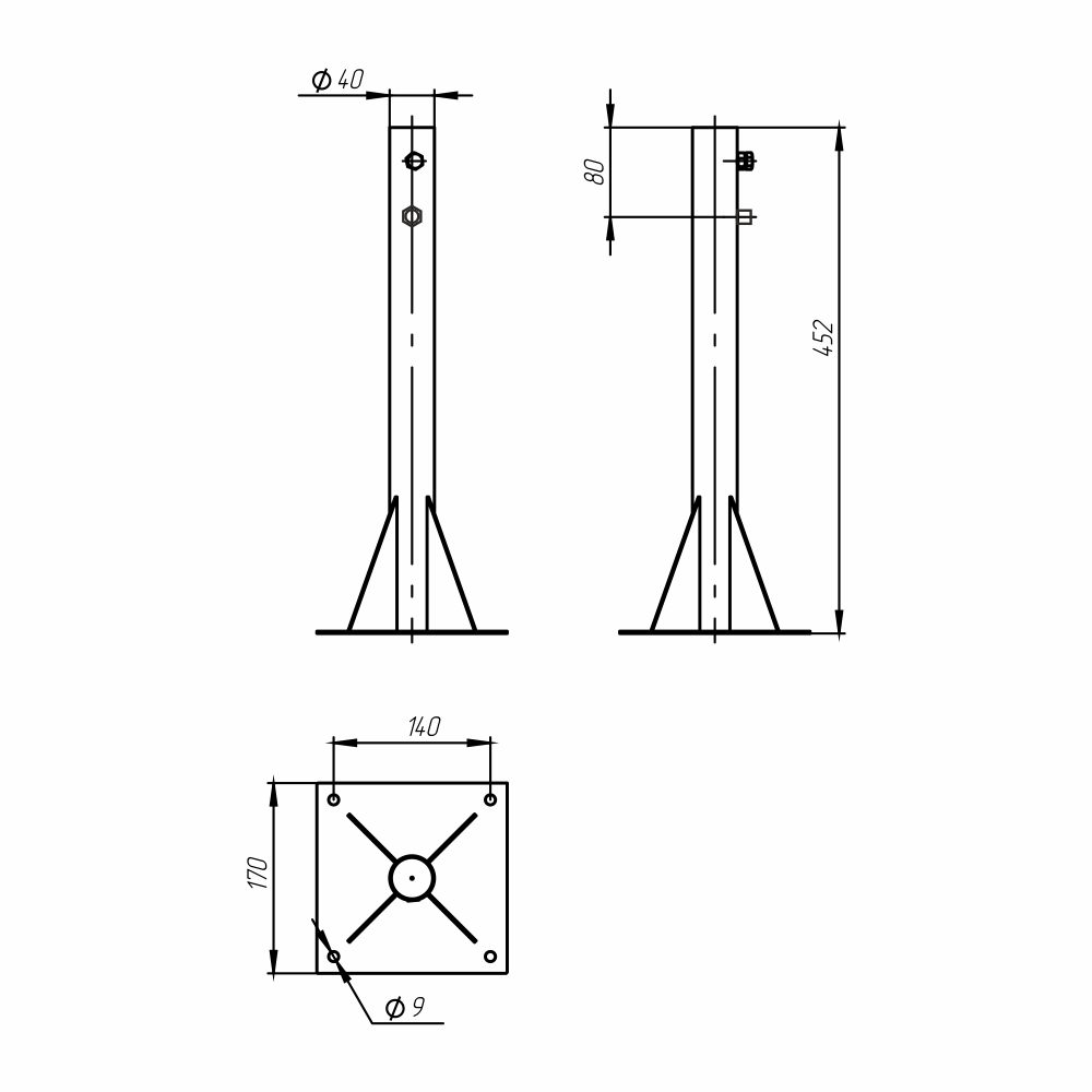 Опора для мачты предназначена для надежной установки молниеприемных мачт на плоскую кровлю зданий и сооружений.Держатель фиксирует мачту молниепримемную серии СММ наружным диаметром 32 мм на горизонтальной твердой поверхности. Для крепления держатель имеет фланец с четырьмя отверстиями диаметром 9 мм.