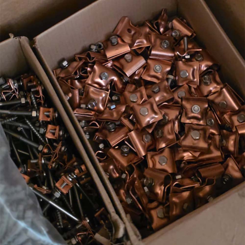 Держатель проводника круглого 6-10 мм для фальца 0.7-3 мм, медь.