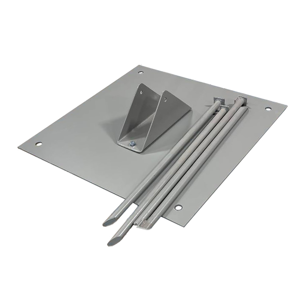 Подпятник для мачты СМТг грунтовой 500 мм. Грунтовой подпятник выполнен в виде плиты и применяется для крепления телескопических мачт серии СМТ высотой от 5,5 до 10 метров на грунте. Плита крепится на грунте при помощи четырех шкворней длиной 0,5 метра. На плите предусмотрено крепление при помощи болтов для подпятника мачты СМТ.