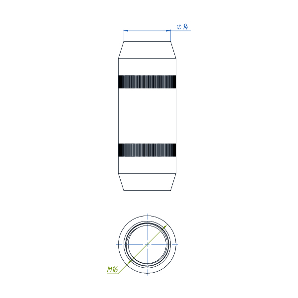 Муфта выполнена из латуни и применяется для соединения омедненных стержней заземления диаметром 14 мм между собой. Изделие имеет резьбу М16. Рифление на наружной стороне обеспечивает удобство сборки. При монтаже стержни заземления соприкасаются друг с другом в центре муфты, благодаря чему ударный импульс не «рассеивается» и с муфты снимается механическая нагрузка.