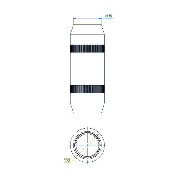 Муфта выполнена из латуни и применяется для соединения омедненных стержней заземления диаметром 16 мм между собой. Изделие имеет резьбу М18. Рифление на наружной стороне обеспечивает удобство сборки. При монтаже стержни заземления соприкасаются друг с другом в центре муфты, благодаря чему ударный импульс не «рассеивается» и с муфты снимается механическая нагрузка.