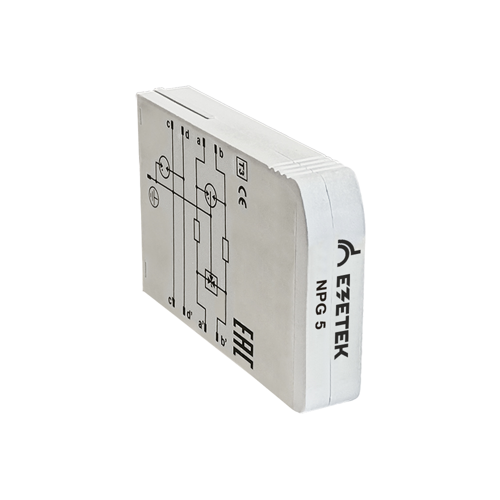 NPG — УЗИП с возможностью подключения «сигнальной» земли, выполненный на базе газоразрядных трубок с терморасцепителями и диодного моста, для защиты оборудования автоматизации, телемеханизации, связи и передачи данных. Устройство устанавливается вблизи защищаемого оборудования и предназначено для защиты от импульсных перенапряжений конечных потребителей по одной паре проводников.