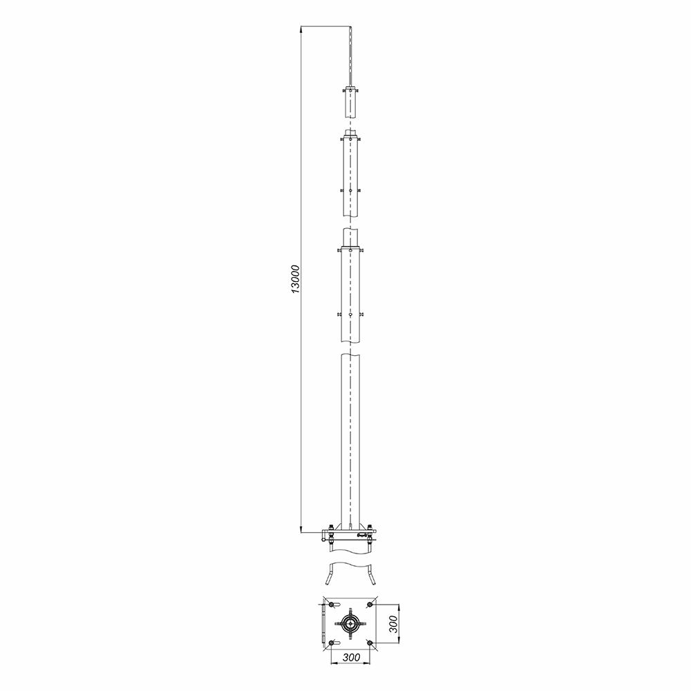 Конструкция представляет собой мачту из секций различных диаметров, молниеприемник 0,5 м и крепеж.