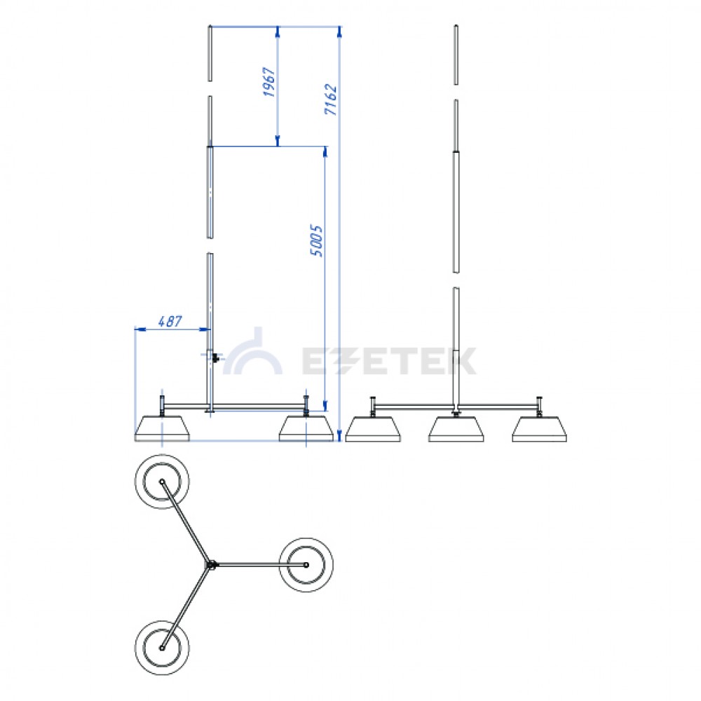 Молниеотвод представляет собой готовый комплект общей высотой 7 м для выполнения молниезащиты зданий и индивидуальных объектов на плоской поверхности. Конструкция закрепляется на поверхности и надежно удерживается под собственным весом бетонных оснований. В качестве опоры для мачты используется тренога. На треногу закреплена молниеприемная мачта серии СММП с алюминиевым молниеприемником. Для соединения молниеотвода с системой заземления предусмотрен специальный зажим под пруток диаметром от 8 до 10 мм. Конструкцию возможно установить как на грунте, так и на плоских кровлях зданий.