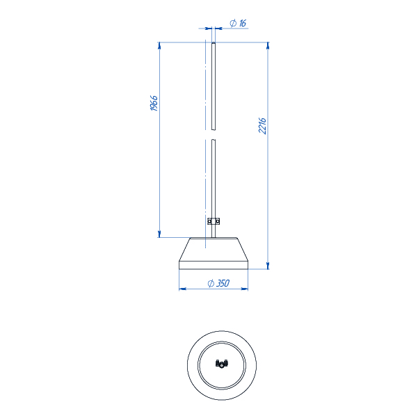 Молниеотвод представляет собой готовый комплект общей высотой 2 м для выполнения молниезащиты индивидуальных объектов на плоской поверхности. Конструкция закрепляется на поверхности и надежно удерживается под собственным весом бетонного основания. На бетонном основании закреплен молниеприемник длиной 2 м. Для соединения молниеотвода с системой заземления предусмотрен специальный зажим под пруток диаметром от 8 до 10 мм.