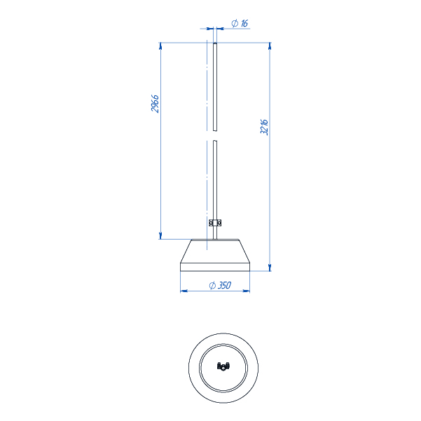 Молниеотвод представляет собой готовый комплект общей высотой 3 м для выполнения молниезащиты индивидуальных объектов на плоской поверхности. Конструкция закрепляется на поверхности и надежно удерживается под собственным весом бетонного основания. На бетонном основании закреплен молниеприемник длиной 3 м. Для соединения молниеотвода с системой заземления предусмотрен специальный зажим под пруток диаметром от 8 до 10 мм.