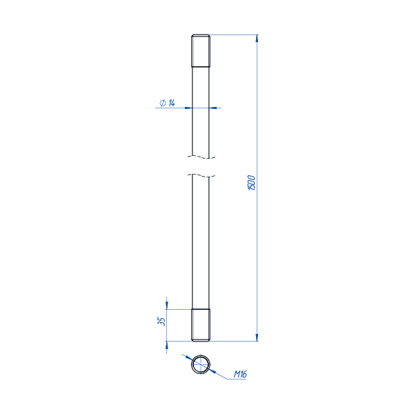 Стержень заземления представляет собой стальной круглый проводник с резьбой М16 на концах. Каждый стержень заземления имеет защитное медное покрытие, нанесенное гальваническим способом, чистотой не менее 99,95 % и толщиной до 250 мкм. Защитное медное покрытие обеспечивает устойчивость к химическим, термическим и механическим воздействиям и позволяет погружать заземлитель в грунт без нарушения целостности покрытия.