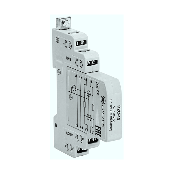 HZC — УЗИП с возможностью подключения «сигнальной» земли, выполненный на базе газоразрядных трубок с терморасцепителями и диодного моста, для защиты оборудования автоматизации, телемеханизации, связи и передачи данных. Устройство устанавливается вблизи защищаемого оборудования и предназначено для защиты от импульсных перенапряжений конечных потребителей по одной паре проводников.