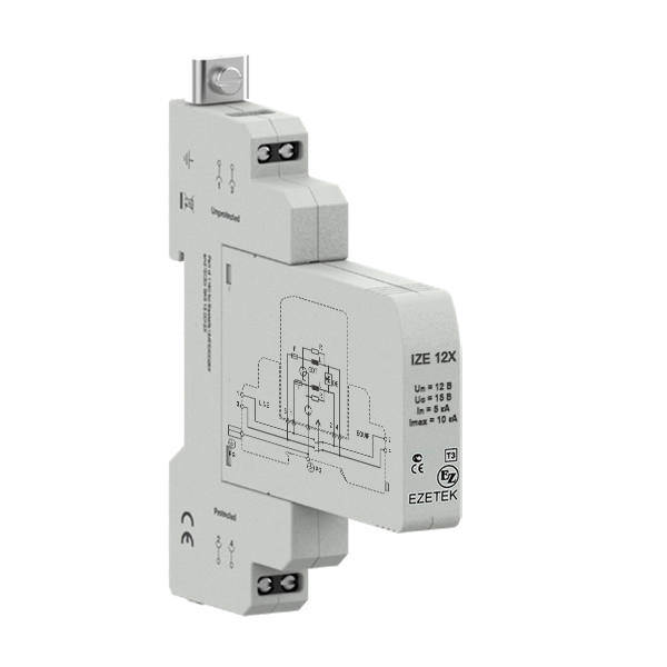 IZE xxX – Устройство защиты от импульсных перенапряжений (УЗИП) предназначен для обеспечения защиты низковольтных цепей передачи сигналов и данных, расположенных во взрывоопасных средах.