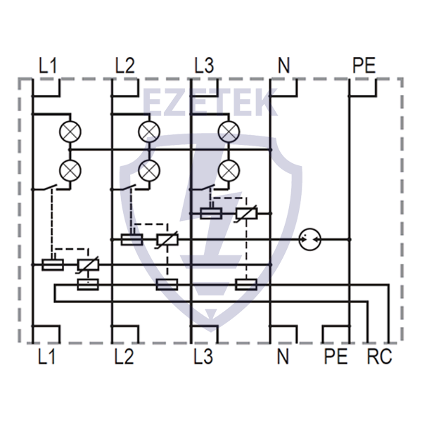 УЗИП (Устройство защиты от импульсных перенапряжений) EZ D 6/275 (3+1) 16A – ограничитель перенапряжений, выполненный на базе варисторов, дополненных газоразрядной трубкой. Применяется для защиты электрооборудования от остаточных грозовых и коммутационных перенапряжений в сетях напряжением 220 В, устанавливается последовательно с защищаемым оборудованием.
