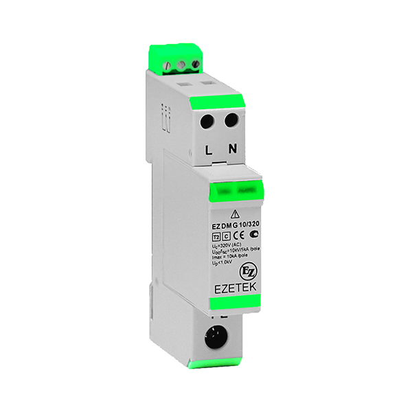 EZ DMG 10/275 (2+0) — однофазный УЗИП III класса комбинированного типа, выполненный на базе варисторов и разрядника. Применяется для организации третьей ступени защиты оборудования в низковольтных цепях до 1000 В. Устанавливаются после УЗИП класса II в пределах 2 – 3 зон молниезащиты (в соответствии с ГОСТ Р МЭК 62305-1 и СО-153-34.21.122) непосредственно вблизи защищаемого оборудования и предназначены для защиты конечных потребителей от остаточных бросков импульсных перенапряжений. Корпус УЗИП выполнен в виде базы и сменного модуля. Применяются в сетях переменного и постоянного тока с системами заземления типа TN-S, TN-C-S.