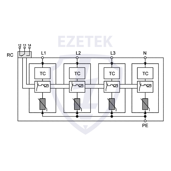 УЗИП EZ C 100/750 (4+0) ТС – четырёхполюсное устройство защиты от импульсных перенапряжений класса испытаний II по ГОСТ IEC 61643-11, выполненное на базе варисторов. Устройство предназначено для установки в сетях с номинальным напряжением 400 В и максимальным длительным напряжением 750 В, способно выдерживать импульсные токи формы 8/20 мкс до 40 кА. Благодаря наличию индивидуальных модулей контроля перегрева значительно увеличивается срок службы варисторов. Применяется в сетях с системами заземления типа TN-S, TN-C-S.