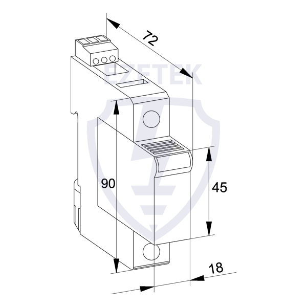 УЗИП EZ C 20/75 ТС (1+0) – однополюсное устройство защиты от импульсных перенапряжений класса испытаний II по ГОСТ IEC 61643-11, выполненное на базе варистора. Устройство предназначено для установки в сетях с номинальным напряжением 60 В и максимальным длительным напряжением 75 В, способно выдерживать импульсные токи формы 8/20 мкс до 20 кА. Благодаря наличию индивидуальных модулей контроля перегрева значительно увеличивается срок службы варистора. Применяется в сетях с системами заземления типа TN-S, TN-C, TN-С-S, TT и IT.