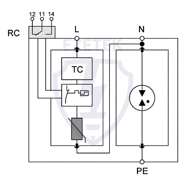 УЗИП EZ C 80/275 (1+1) TC – двухполюсное устройство защиты от импульсных перенапряжений класса испытаний II по ГОСТ IEC 61643-11, выполненное на базе варистора и газового разрядника. Устройство предназначено для установки в сетях с номинальным напряжением 230 В и максимальным длительным напряжением 275 В, способно выдерживать импульсные токи формы 8/20 мкс до 40 кА. Благодаря наличию индивидуальных модулей контроля перегрева значительно увеличивается срок службы варистора. Применяется в сетях с системами заземления типа TN-S, TN-С-S, TT и IT.
