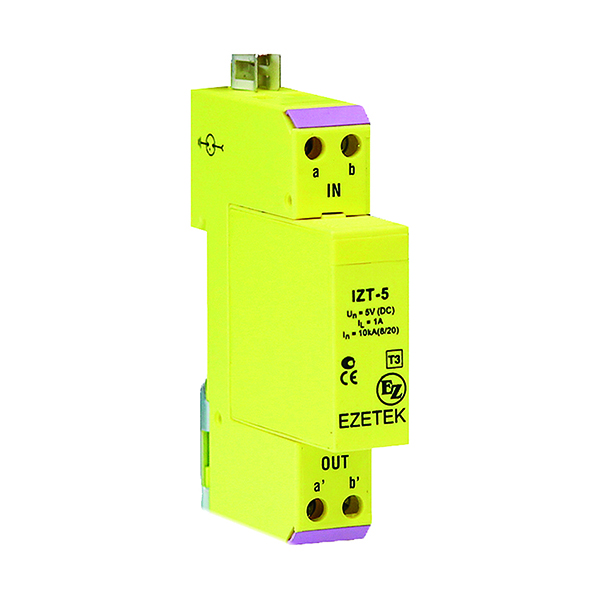 IZT — УЗИП, выполненный на базе газоразрядной трубки с терморасцепителями и варисторов, для защиты оборудования автоматизации, телемеханизации и передачи данных. Устройство устанавливается вблизи защищаемого оборудования и предназначено для защиты от импульсных перенапряжений конечных потребителей по одной паре проводников.