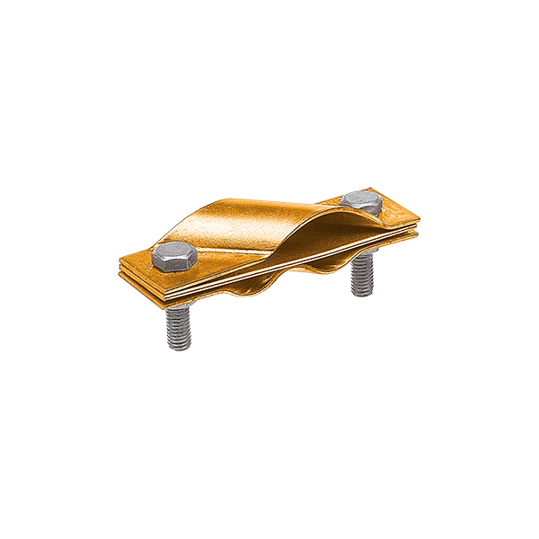 Зажим используется для соединения стержня заземления с прутком, либо полосой Т-образным либо параллельным способом. Он стягивается при помощи двух шестигранных болтов с гайками из нержавеющей стали с резьбой М8. Наличие разделительной пластины позволяет соединять при помощи зажима электрохимически слабосовместимые металлы.