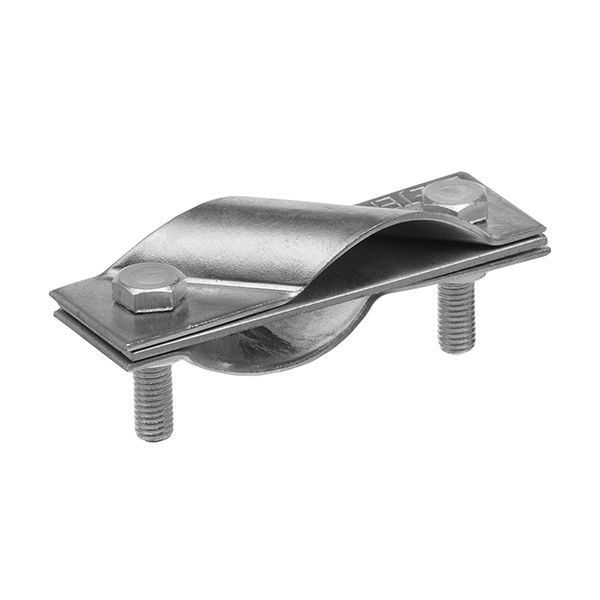 Зажим используется для соединения стержня заземления со стержнем Т-образным способом. Он стягивается при помощи двух шестигранных болтов с гайками из нержавеющей стали с резьбой М8.