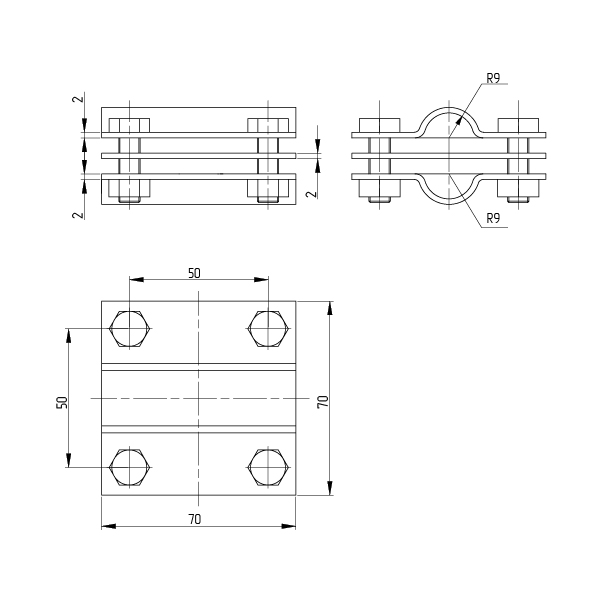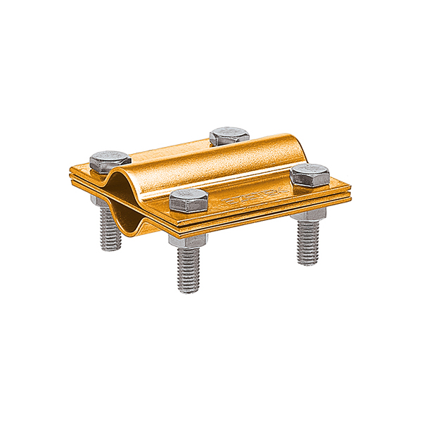 Зажим используется для соединения стержней заземления Т-образным либо параллельным способом. Он стягивается при помощи четырех шестигранных болтов с гайками с резьбой М8. Болты и гайки для латунного зажима выполнены из нержавеющей стали. Наличие разделительной пластины позволяет соединять при помощи зажима из латуни электрохимически слабосовместимые металлы.