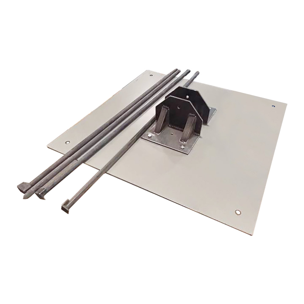 Грунтовой подпятник выполнен в виде плиты и применяется для крепления телескопических мачт серии СМТ высотой от 11 до 16 метров на грунте. Плита крепится на грунте при помощи четырех шкворней длиной один метр. На плите предусмотрено крепление при помощи болтов для подпятника мачты СМТ.