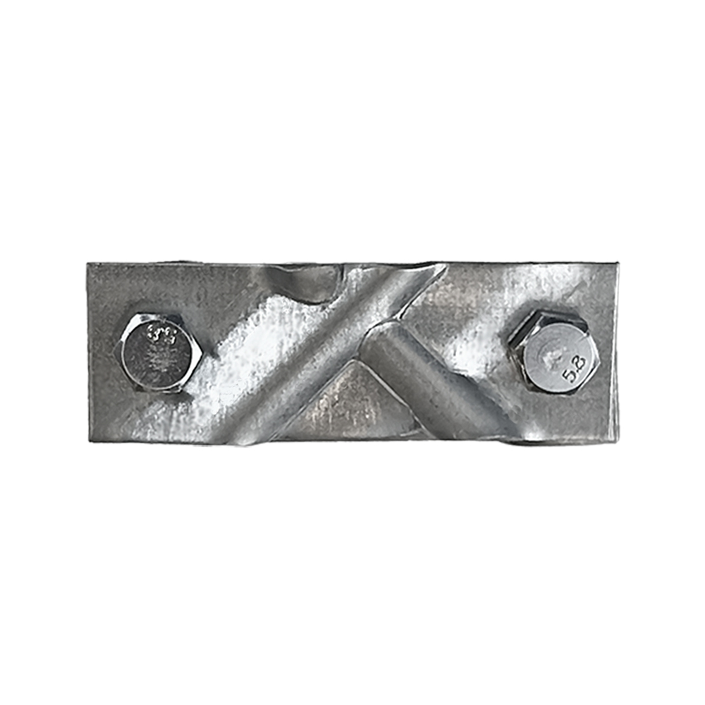 Зажим используется для соединения стержня заземления с прутком, либо полосой Т-образным либо параллельным способом. Он стягивается при помощи двух шестигранных болтов с гайками из нержавеющей стали с резьбой М8.